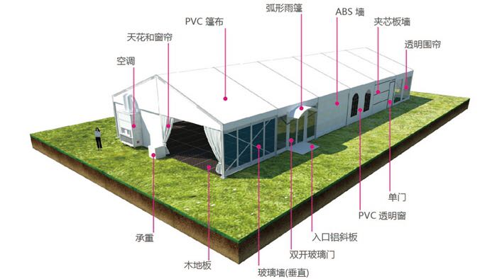 產(chǎn)品優(yōu)勢(shì).外觀簡(jiǎn)潔大方. 內(nèi)無支柱,百分百利用空間.可選配套設(shè)施,可加照明、排水、防撞、地臺(tái)、空調(diào)、發(fā)光燈箱、墻體、門等系統(tǒng).鋁合金輕便,安裝拆卸方便快捷.廣泛應(yīng)用于展會(huì)、售樓處、倉儲(chǔ)、景區(qū)、酒店、夜市等。
